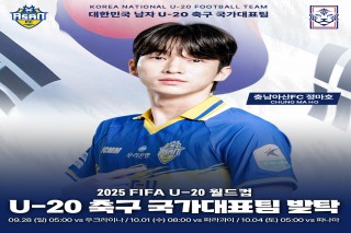 충남아산FC 푸른 신성 정마호,구단 최초 U-20 월드컵 대표팀 발탁충남아산프로축구단(구단주 오세현, 대표이사 이준일, 이하 충남아산FC) 소속 정마호(20)가 구단 역사상 최초로 U-20 월드컵 대표팀에 승선한다. 오늘 8일, 대한축구협회는 이창원 감독이 이끄는 ‘2025 FIFA U-20 월드컵’ 대표팀 최종 명단 21인을 발표했다. 충남아산F