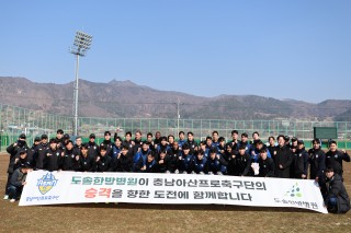 ‘기력 충전 완료!’ 도솔한방병원, 충남아산FC 전지훈련지 방문해 공진단 전달충남아산프로축구단(구단주 오세현, 대표이사 이준일, 이하 충남아산FC)의 든든한 후원사 도솔한방병원이 지난 12일(목) 2차 전지훈련지인 벌교를 방문해 공진단 등 한약을 전달했다. 이번 지원은 강도 높은 훈련을 이어가고 있는 선수들의 피로 회복과 체력 보강, 컨디션 유지를 돕기 위