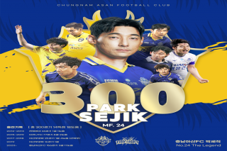 충남아산FC 레전드 박세직, K리그 통산 300경기 출전 달성!충남아산프로축구단(이하 충남아산FC)의 ‘레전드’ 박세직이 K리그 통산 300경기 출전 대기록을 달성했다. 박세직은 지난 8일(수) 안산 와~스타디움에서 열린 하나은행 K리그2 2025 33라운드 안산그리너스FC와의 경기에서 교체 출전하며, K리그 통산 300경기