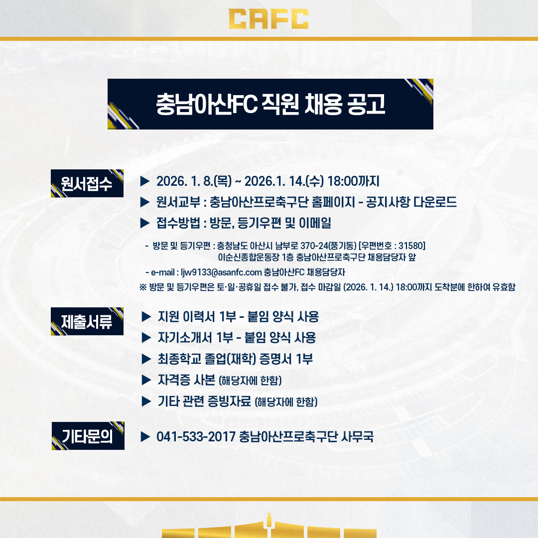 충남아산프로축구단 직원 채용 공고