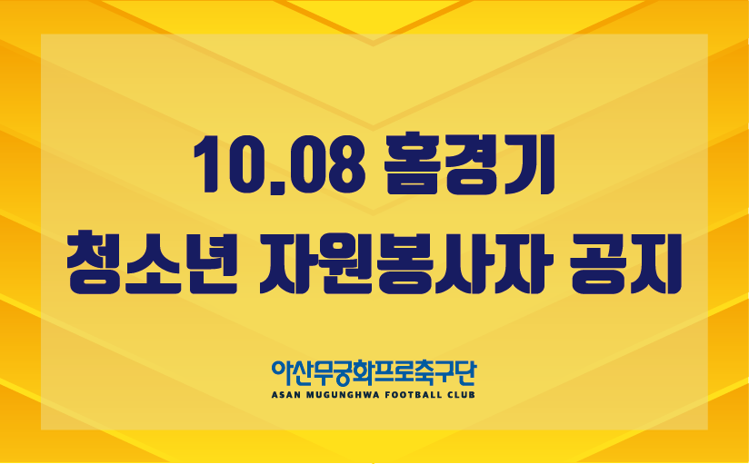 -10월 8일 아산무궁화프로축구단 홈경기 청소년 자원봉사자 모집