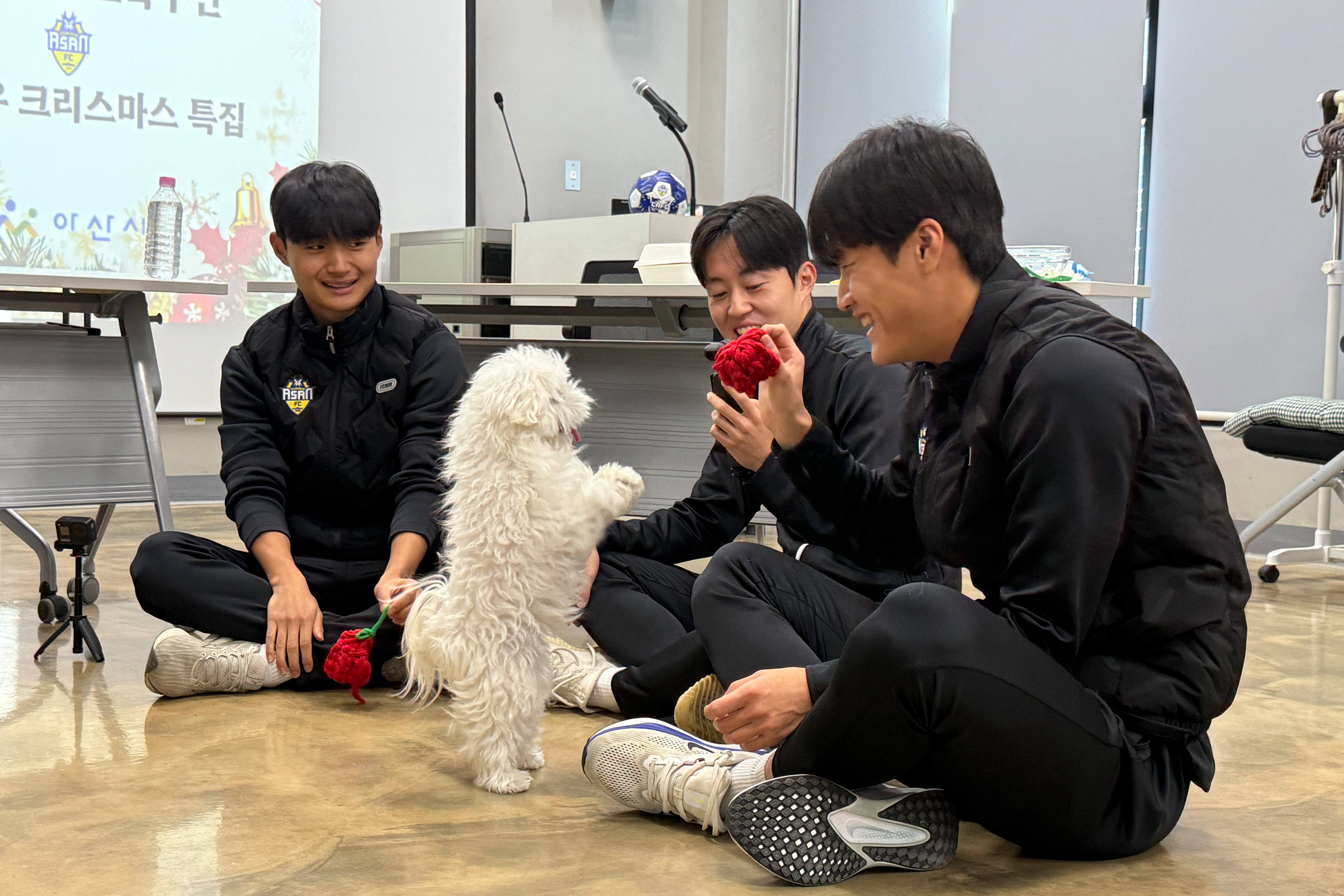 특히 정재윤 선수는 지난 8월에 이어 이번이 두 번째 방문이다. 정재윤 선수는 “지난번에 강아지들과 정이 많이 들어 입양을 고민했지만 여건상 그러지 못해 아쉬움이 컸다. 동물들 모두 따뜻한 가정에서 연말을 맞이하길 바란다”라고 전했다.