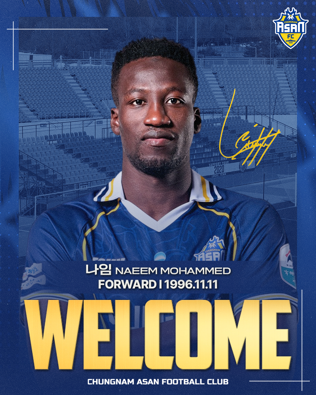 충남아산프로축구단(구단주 오세현, 대표이사 이준일, 이하 충남아산FC)이 가나 출신 공격수 나임 모하메드(NAEEM MOHAMMED)를 영입하며 공격진을 보강했다.
