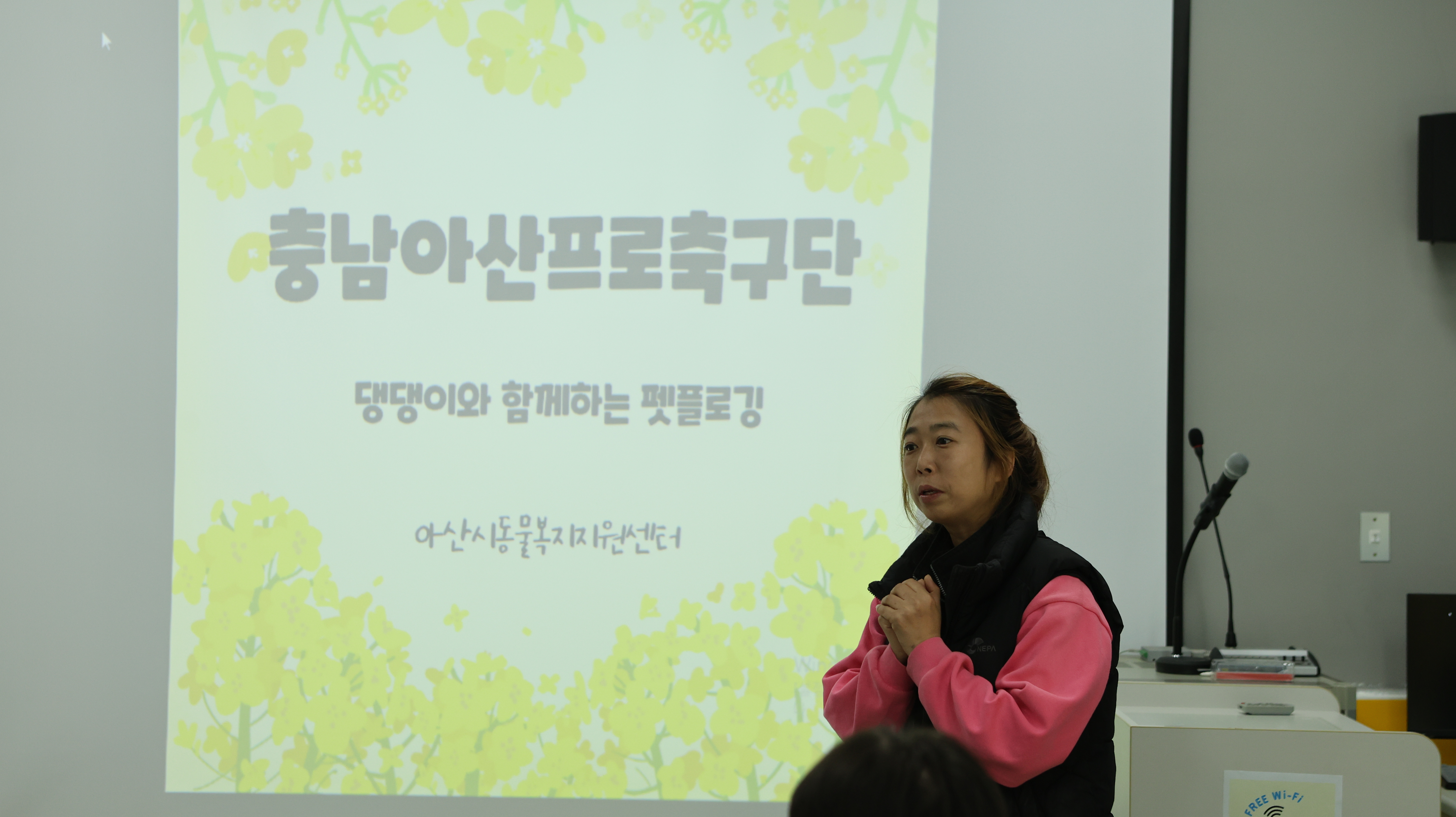 사무국 직원들은 먼저 유기동물 보호와 올바른 반려문화에 대한 기본 교육을 받았다. 교육에서는 산책 시 유의사항, 반려동물 내장칩의 필요성, 유실·유기 예방을 위한 보호자의 책임 등에 대한 설명이 이뤄졌다. 특히 내장칩은 반려동물을 잃어버렸을 때 보호시설에서 보호자를 보다 신속하게 확인할 수 있는 중요한 수단이라는 점을 강조했다.![[아산] 충남아산FC 사무국 직원, ‘블루포우’ 펫로깅 활동 실시_사진2.JPG](/updata/edimg/202603231501331588754084.jpg)