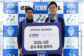 충남아산FC, 프라이드병원과 2026시즌 공식 의료 업무 협약 체결충남아산프로축구단(구단주 오세현, 대표이사 이준일, 이하 충남아산FC)이 지난 10일(화) 이순신종합운동장에서 프라이드병원과 2026시즌 공식 의료 업무 협약을 체결했다. 이날 협약식에는 충남아산FC 박명화 사무국장과 프라이드병원 전용철 대표원장이 참석했다. 아산시 배방읍에