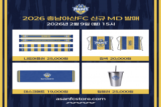 ‘전연령 팬층 저격’ 충남아산FC, 2026시즌 신규 MD 17종 출시충남아산프로축구단(구단주 오세현, 대표이사 이준일, 이하 충남아산FC)이 오는 9일 15시, 2026시즌을 맞아 신규 MD를 출시한다. 이번 신규 MD는 니트 머플러(2종), 짐색, 텀블러, 데스크매트, 페넌트, 주차번호판, 사인볼 등 총 17종으로 구성됐다. 특히 티티 인형 키