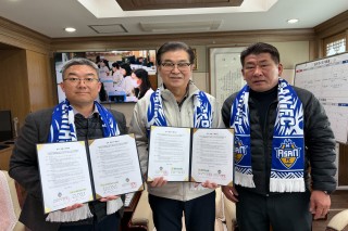‘충청남도 축구 네트워크 구축’충남아산FC, 금산인삼FC와 업무 협약 체결충남아산프로축구단(구단주 오세현, 대표이사 이준일, 이하 충남아산FC)이 지난 23일(월), 금산인삼FC와 업무 협약을 체결했다. 이날 협약식에는 충남아산FC 이준일 대표이사와 금산인삼FC 강정훈 대표 등 양 구단 관계자들이 참석했다. 금산인삼FC는 지난해 말 창단해