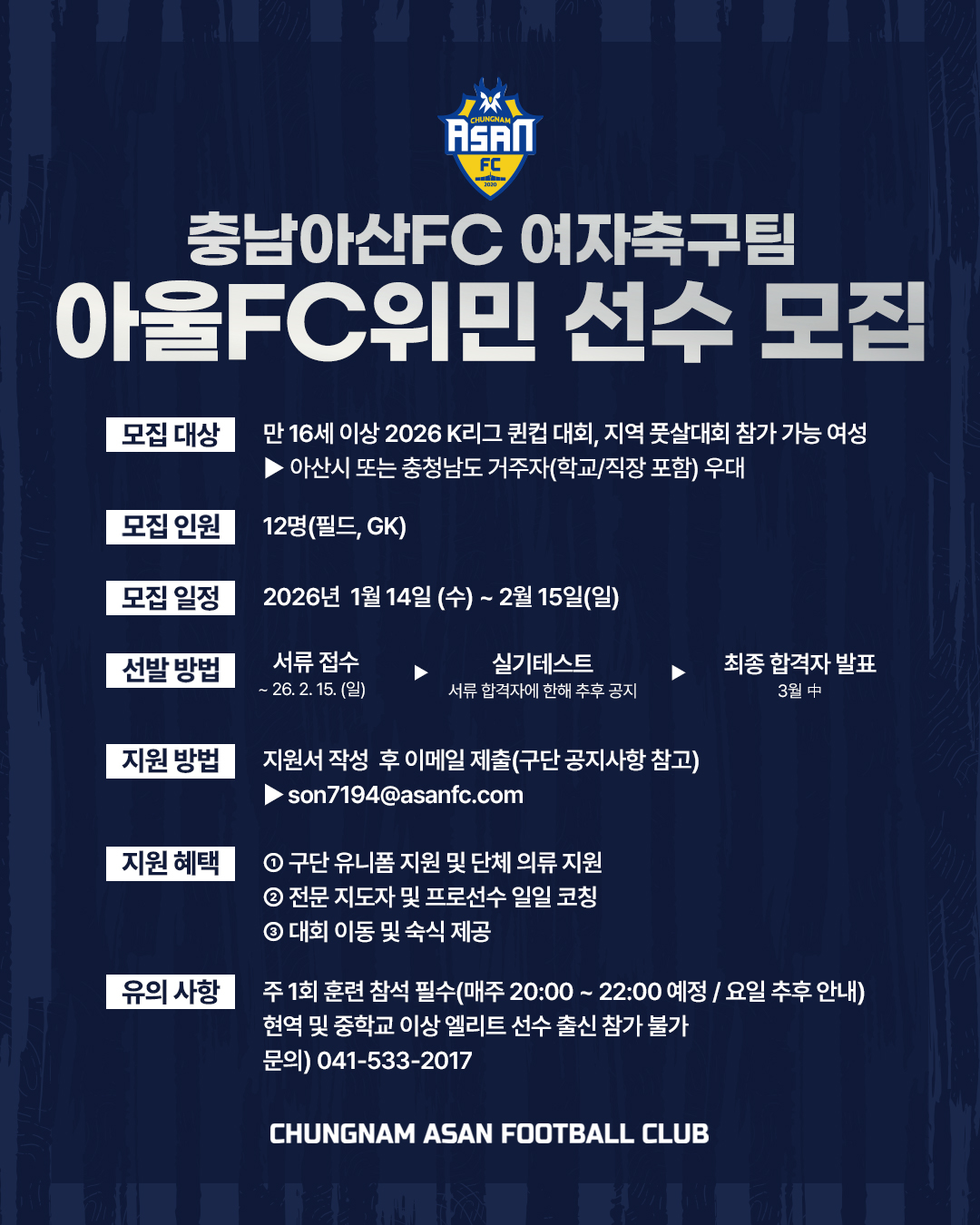 2026년 충남아산FC 직원 채용 공고 (홍보마케팅팀)
