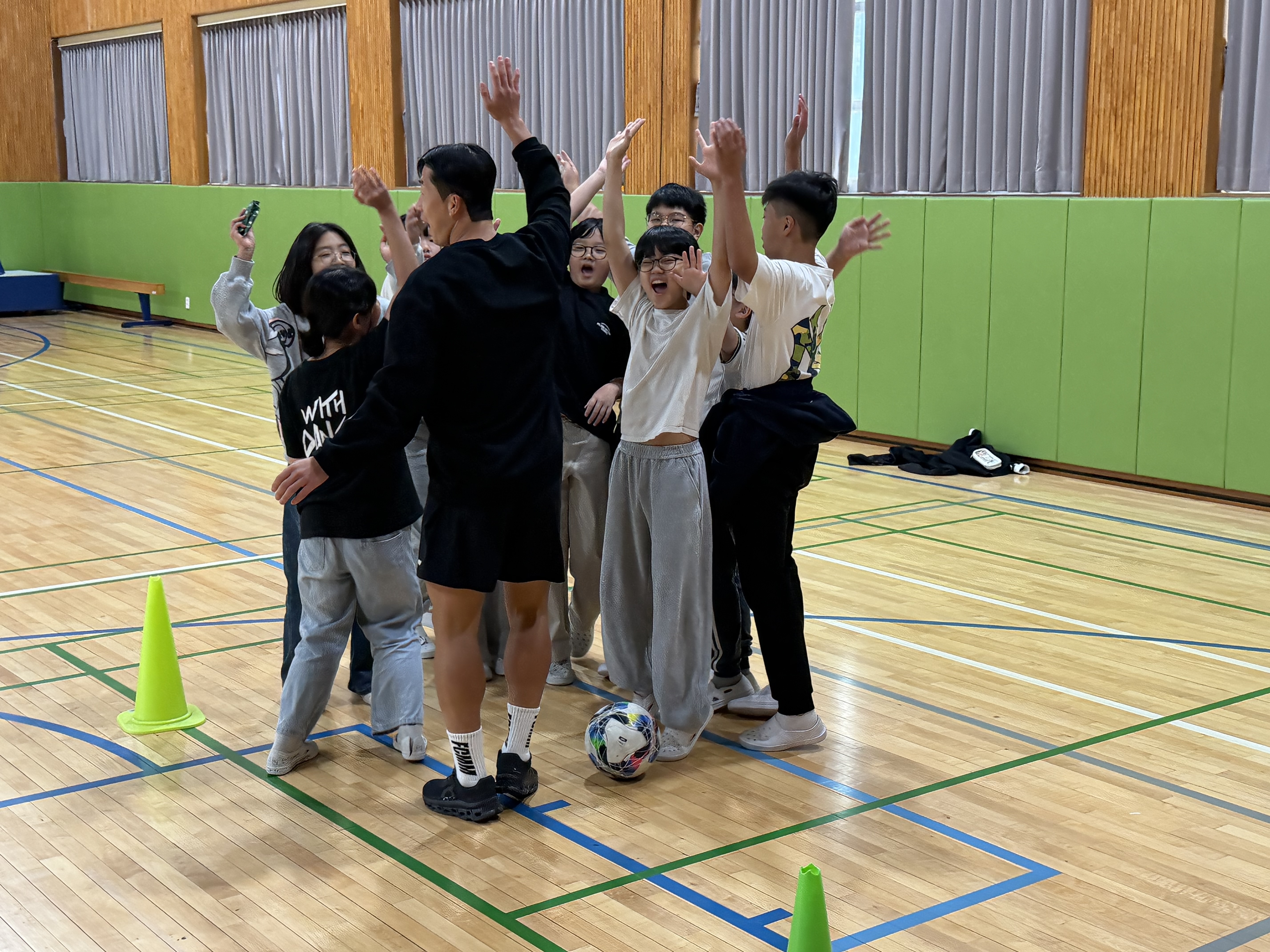 이날 수업에는 충남아산FC 김주성, 이연우 선수가 함께 기본기 훈련과 미니게임을 지도하며 수업을 이끌었다. 기본기 중심의 축구 클리닉 외에도 퀴즈 이벤트를 진행해 구단과 선수들에 대해 자연스럽게 알아보는 시간을 가졌다.