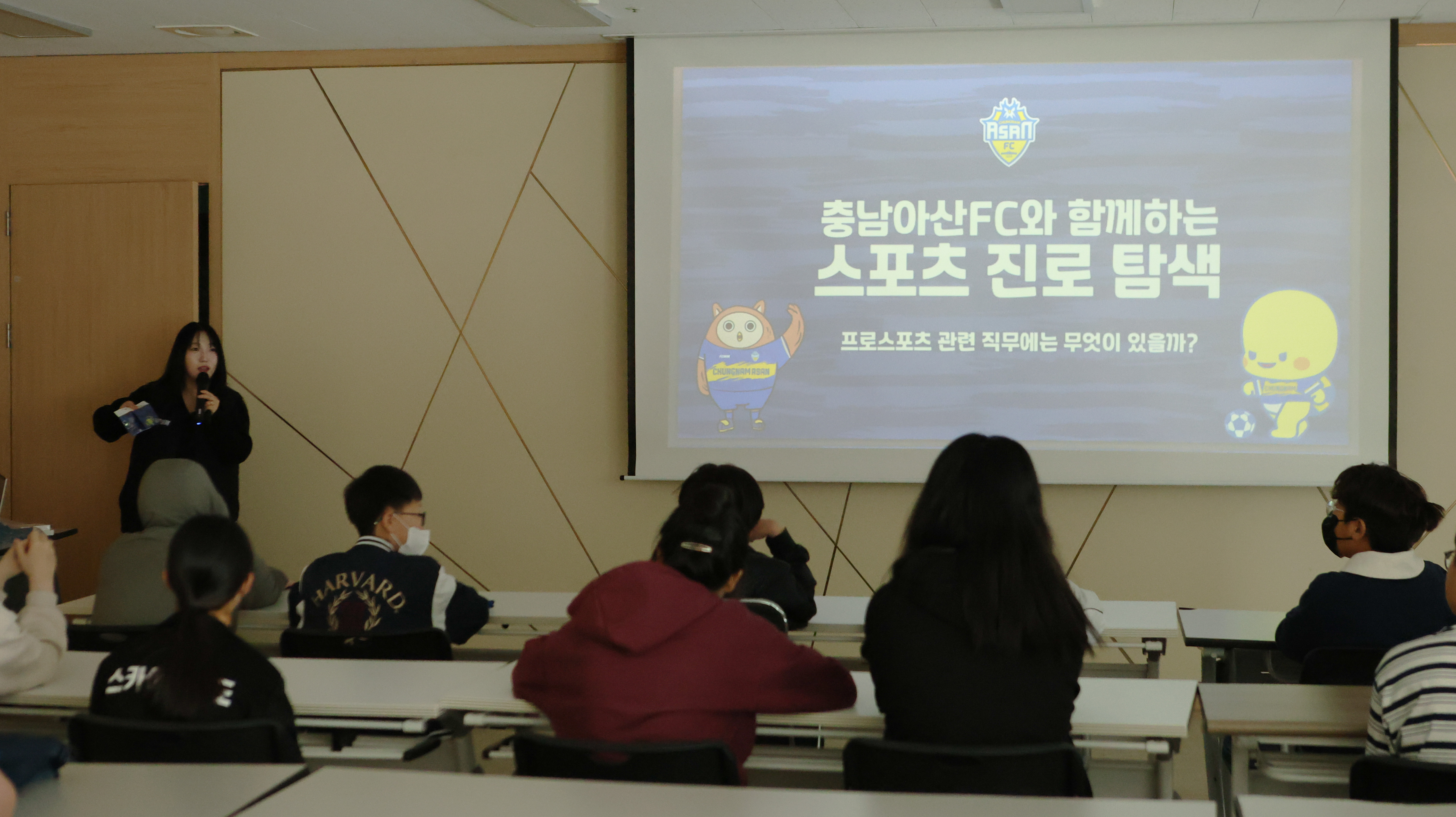 본격적인 투어에 앞서 진행된 진로 강의에서는 충남아산FC가 단순히 경기를 치르는 곳이 아니라 다양한 직무와 산업이 함께 움직이는 공간이라는 점을 소개했다. 선수뿐 아니라 프런트, 사진작가, 아나운서, 지원 스태프 등 다양한 분야의 직업을 소개하며 학생들이 자신의 꿈과 진로를 생각해보는 계기를 마련했다.